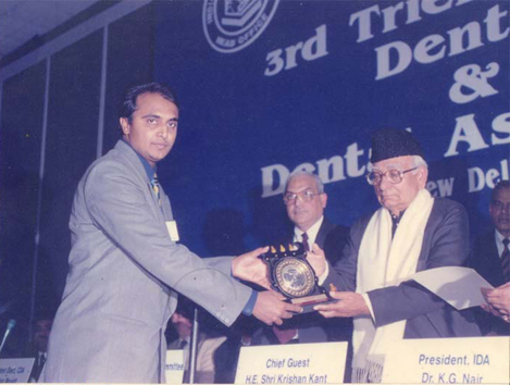 Received National level IDA Award,for excellence in Indian Dental Association activities from the Vice President of India in 2000 at New Delhi