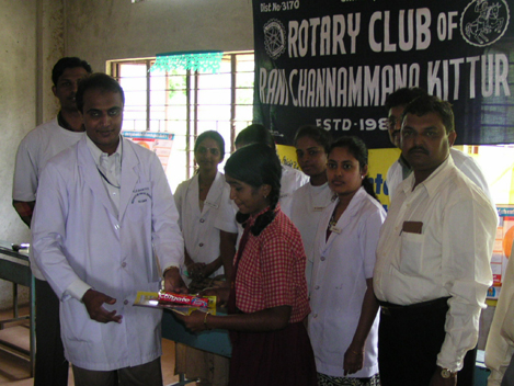 Distributing free dental health kits to school children at Kittur,dist.Belgaum